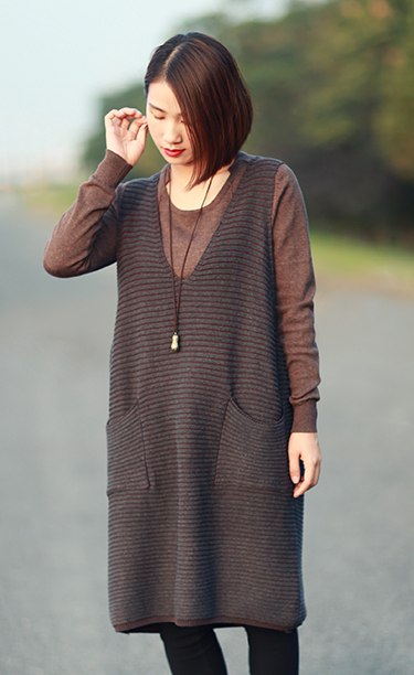 Тут можно одеть пуловер вниз,водолазку,так же поясом затянуть.