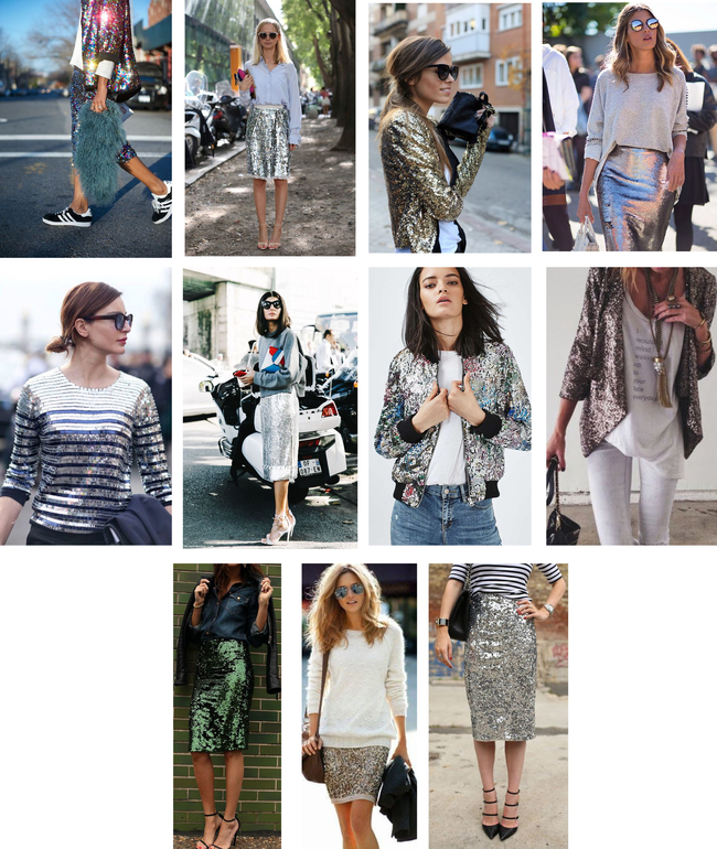 Пайетки или вещи с металлическим эффектом можно встретить практически во всех магазинах: НМ, mohito, stradivarius, zarina, zara, berhska, mango и т.д., список огромен.