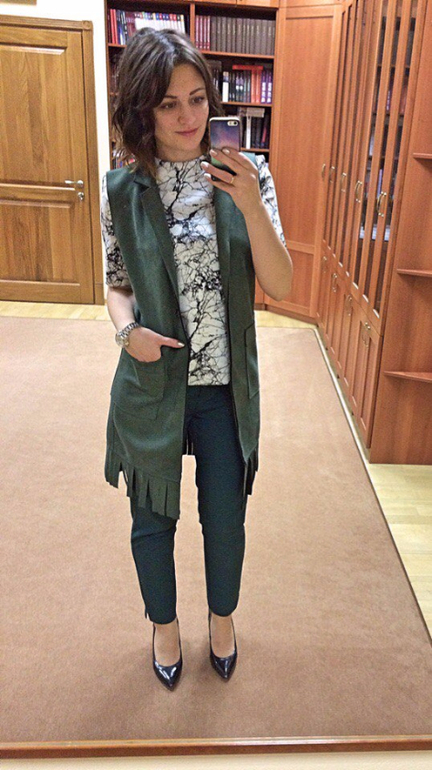 ОдеждаТеплилась во мне надежда, что все-таки сегодня мы работать не будем, но фиг там....после веселого празднования дочкиного пятилетия я покорно встала в 5 утра и поехала на работу (( Поэтому за видок пардоньте, я вчера немножко отдохнула ))))