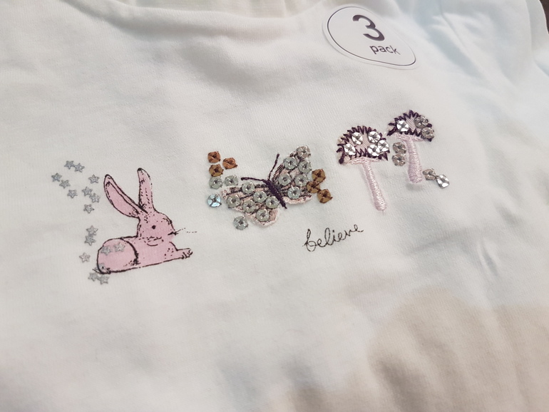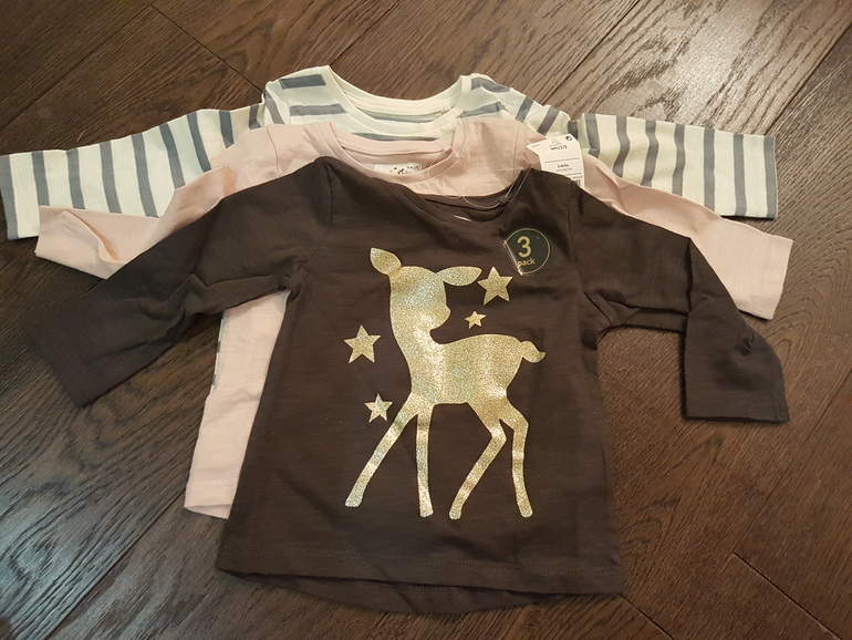 Стандартно футболочки. Очень нравится качество, безумно мягкие. я брала на 3-6 мес-офигенские. Захотела сейчас тоже взять