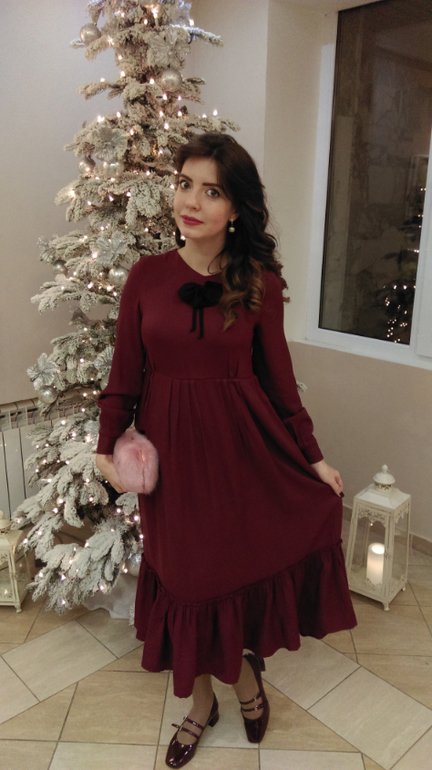 Самая стильная!Простите меня те, кому надоела уже со своим бордовым платьем, но обещала показать второй образ с ним и детский новогодний ))