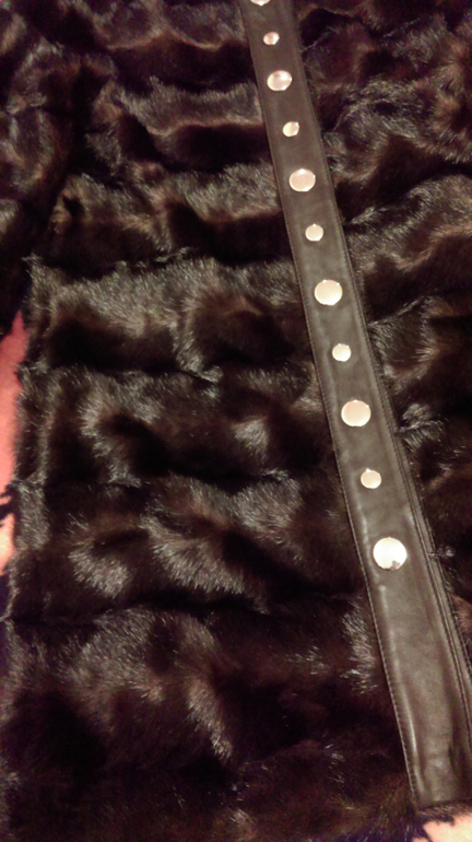 На счет этой вещицы есть сомнения. Подстрижена она красиво, фото скорее всего не передает. Цвет - темно-коричневый, вставки с пуговицами кожаные. Сидит в целом симпатично, гонять можно на весну и осень, только вот продумать с чем.