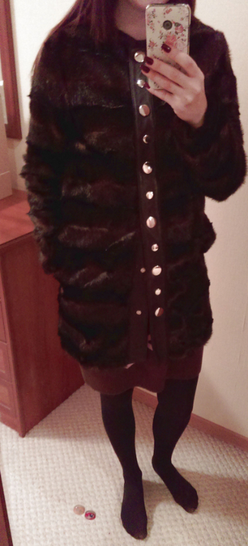 Как-то решила заглянуть на сайте в раздел "Мех" и так красиво смотрелось это пальто )) Сейчас уже к сожалению, на нет его, чтобы картинку эту показать. Стоило 12 тыс. Бросила в корзину. А в момент распродажи была скидка 50%, ну я и взяла на пробу как сказать, а точнее повелась на модный тренд искусственного меха )