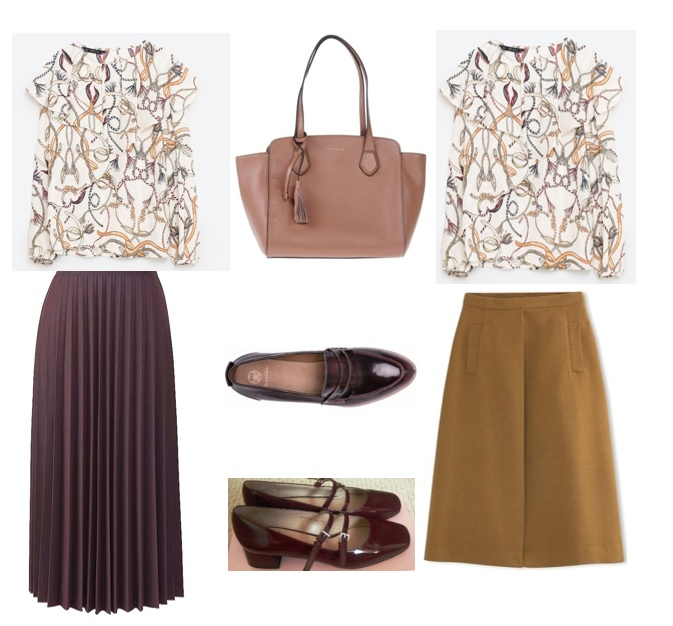Склоняюсь к тому, что все же имеет место быть эта блузка, очень хочется к ней песочную юбку добавить, хотя по цветам и темно-синяя тоже подойдет )