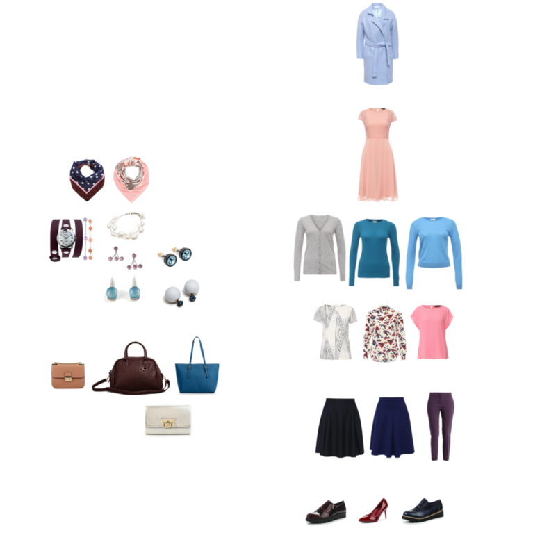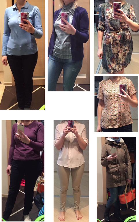 Часть вещей из комплектов, которые были в "Путеводителе по стилю", а какие-то куплены уже в процессе. Что-то переиграли, заменили похожим, добавили другой цвет или просто новые вещи, необходимые для пополнения гардероба.