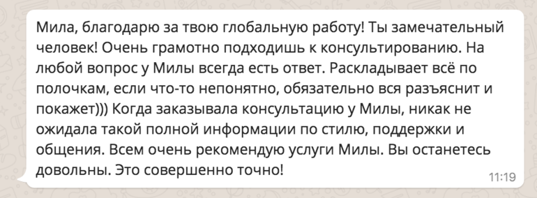 К тому, что когда есть желание поработать со стилистом, не важно он-лайн или нет, девочки, помните, что после получения услуги у вас обязательно должно быть время на покупки. И не только время, но и бюджет. Иначе, результата никакого не будет! Прочитали, закрыли и забыли… Если уж настроились меняться идите до конца! Тем более когда с вами в "команде" стилист, который готов помочь с покупками и ответить на все вопросы. Почему бы этим не воспользоваться???!!