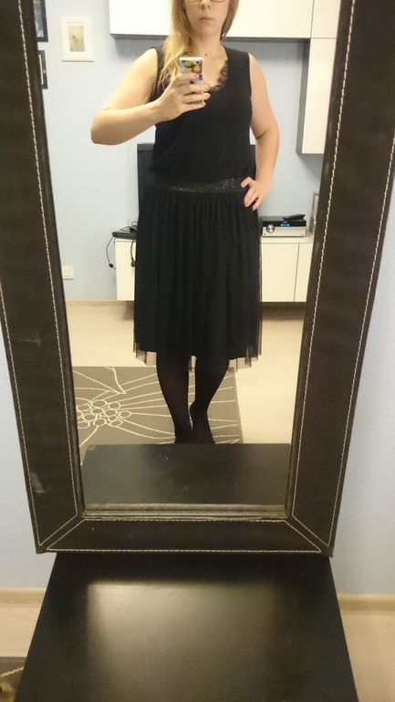 верх- черный топ без рукавов.....а теперь сижу и думаю- надо ли болеро????