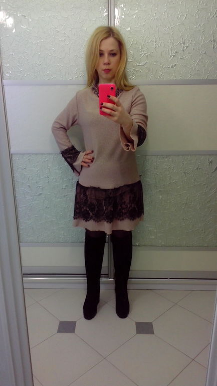 Елена, спасибо Вам за мнение, оно для меня важно. Розовые платья сдала обратно(их 2, правда мало кто заметил, они практически одинаковые). Действительно, все лучшее сразу)) Украшение обычно ношу с однотонным серым платьем. Кожаное, действительно, убивает фигуру, чувствую будто на мне одет мешок)) Спасибо за совет про платье-свитер, попробую, но обычно они мне подчеркивают живот(( но надо мерить, искать.