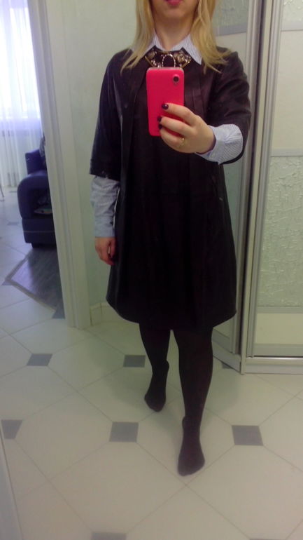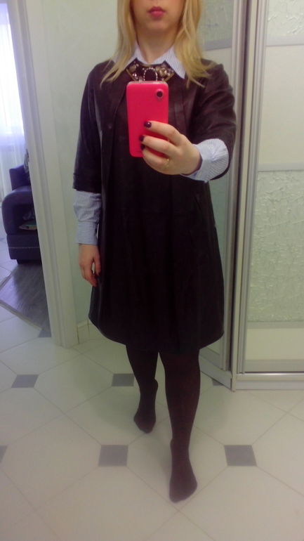 Спасибо, Катя! Первые розовые сдала(их там два). Кожаное - черное, и колготы тоже. Одно я его носила во время беременности с длинным украшением, но мне никогда не нравилось, чувствую себя как в мешке(( Роста мне может для него не хватает, не смогу наверное, носить((