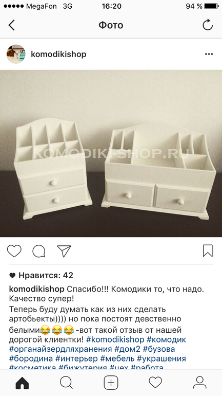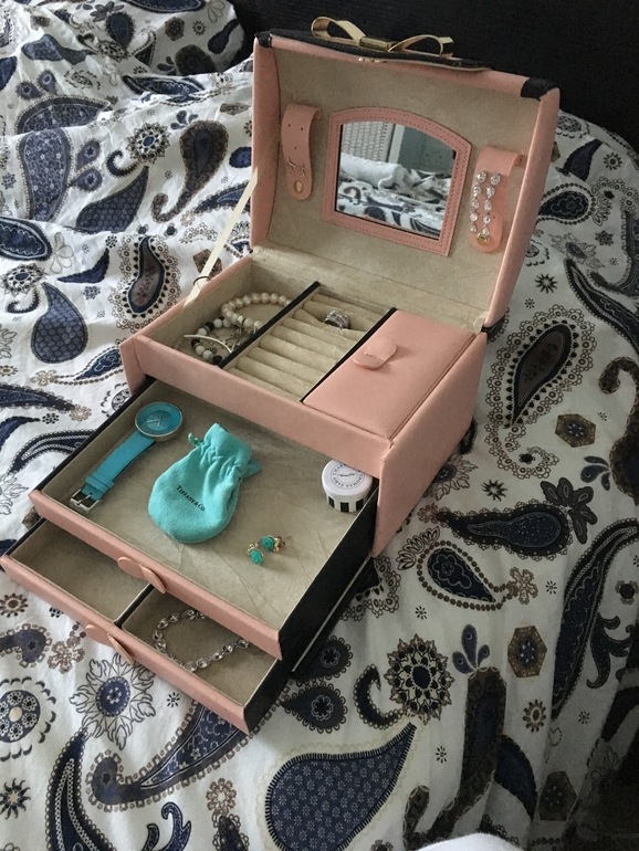 А у меня такая большая коробочка.) Точнее две. В одном укращения в другом косметика, плюс 2 верхних ящика тоже под косметику используются.
