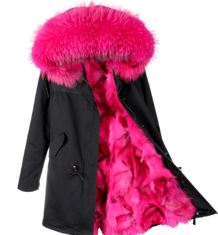 Розовый мех Лисы Куртка, длинные стиль мода зима лисий мех куртка для женщин лисий мех и пиджаки, mulitcolor армии зеленый женщины парка