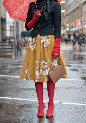 -Колготки в тон с одеждой. И вот тут, цвет набирает обороты и фантазия безгранична! Главное, создать эффект бесконечной ноги