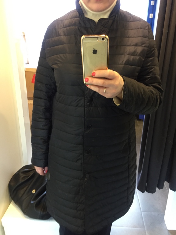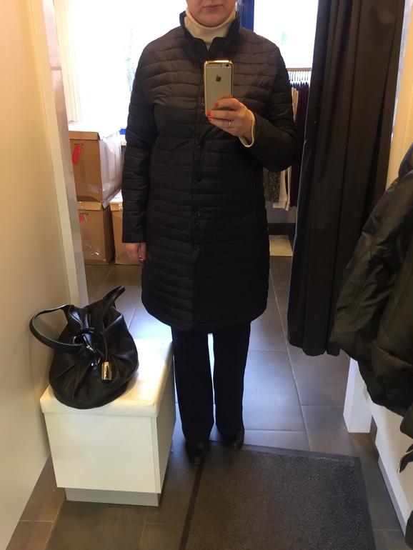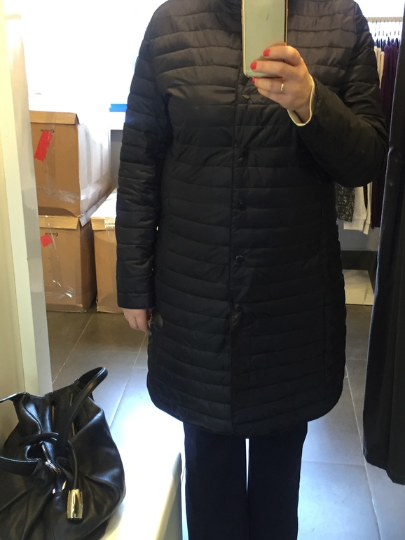 Мне не нравится как село сверху. Поскольку это пальто базовое, сидеть оно должно идеально. Здесь мне кажется что верх великоват. .
