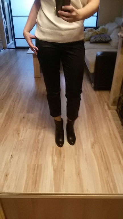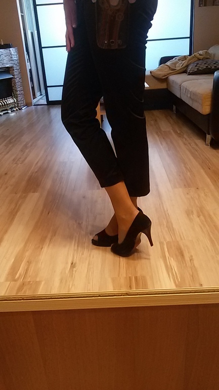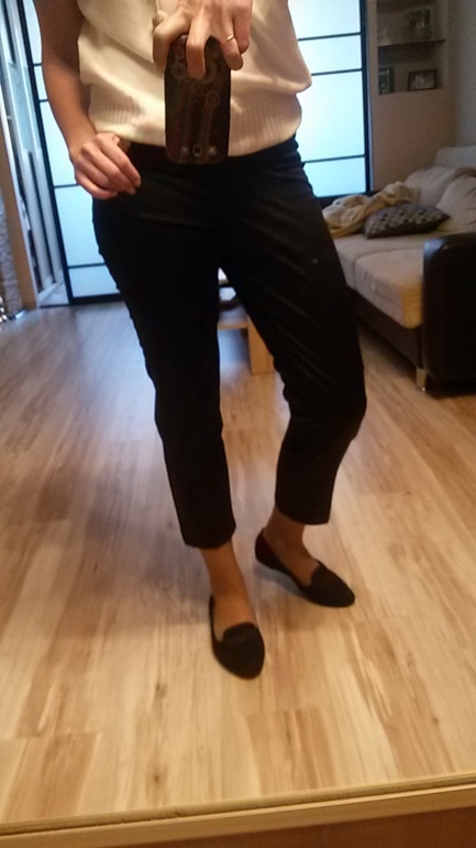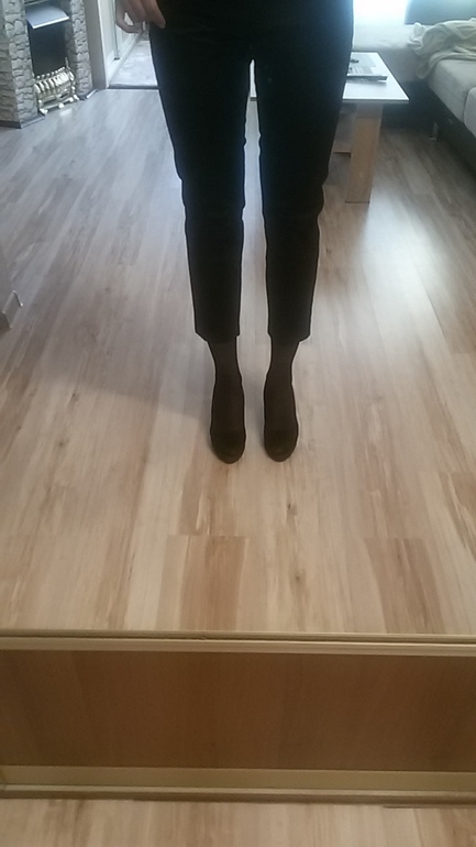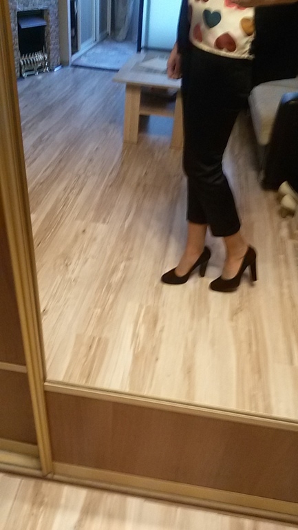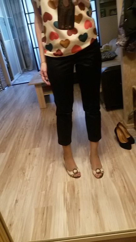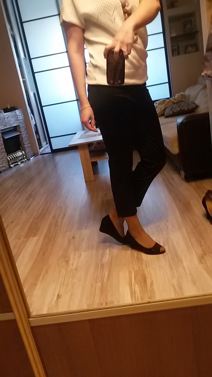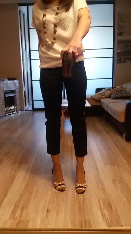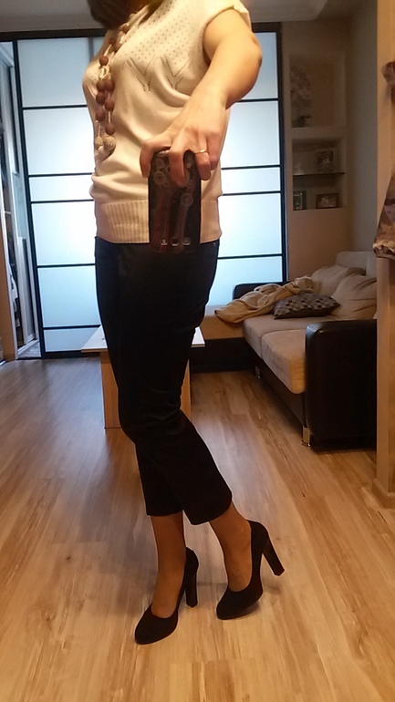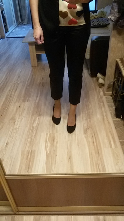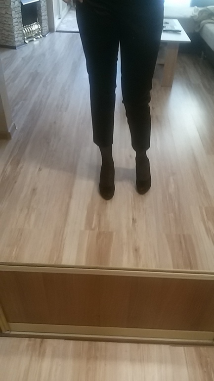 Только с ботильонами никак,ну и с летней светлой обувью не очень,все остальные фото имеют место быть и с телесными и с черными колготками,мне даже с черными больше понравилось наверное потому что с ними эти брюки не так заметно ногу режут