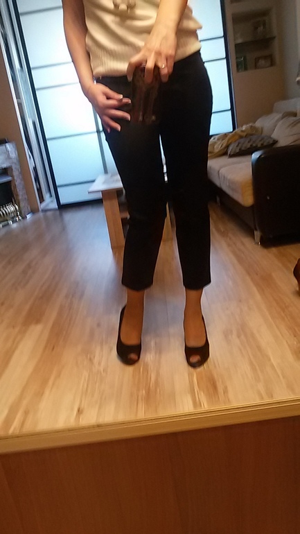 ПосоветуйтеНачало тут - смущали ботильоны, а тут сами капри забраковали. Нет, это не штаники, из которых я выросла - это реально фирменные капри. Ок, а если их под туфли - так то хоть можно?