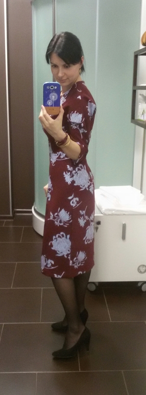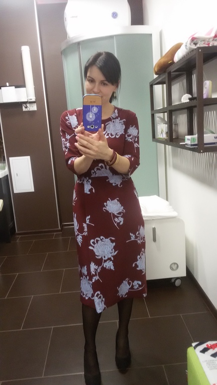 Платье мне нравится, Вам идёт! А обувь хочется бордовую сюда и колготки посветлее )