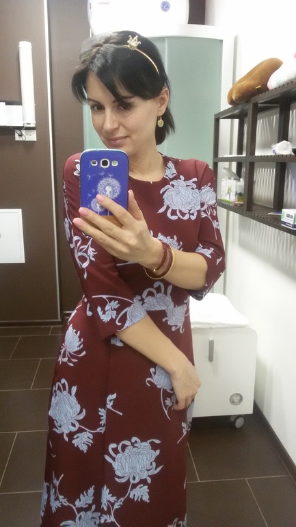 ОдеждаЭто второе платье,которое я три недели назад взяла в Зарине. Взяла на убыль,так сказать), т.к. тогда оно плотнячком на мне сидело. И вот я стала легче и смогла его надеть.
