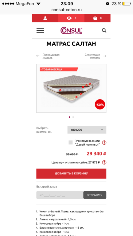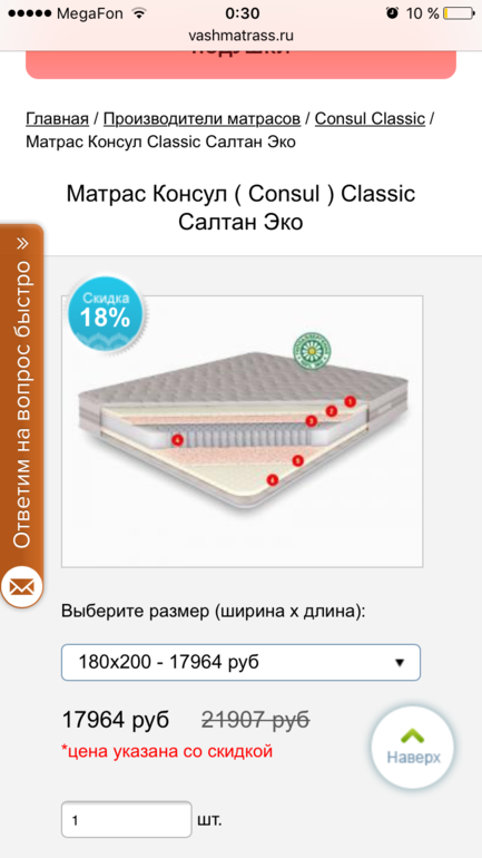 На оф сайте консула матрац дороже на 11тр, если я ничего не путаю...