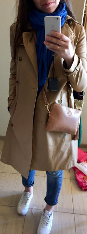 Какой тренч!!! С синей сумкой, синим шарфом и коричневой обувью прям идеально)