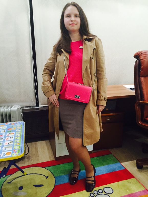 тренч хорошо с розовой сумочкой! :)
