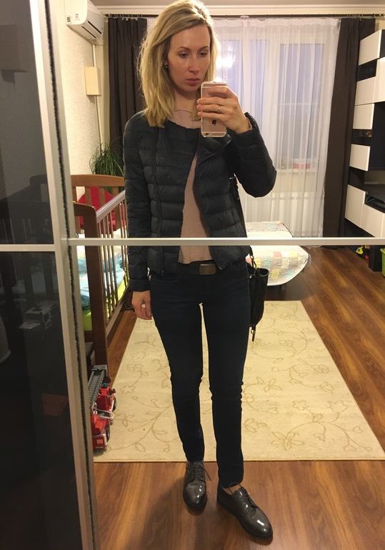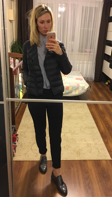 Мне очень понравилось, я сама часто также хожу - все получается темное, разве что свитерок или рубашка своим цветом уныние разбавляют. Очень понравилась ваша курточка, она с косой молнией? Не расскажете, где такую купили? :)