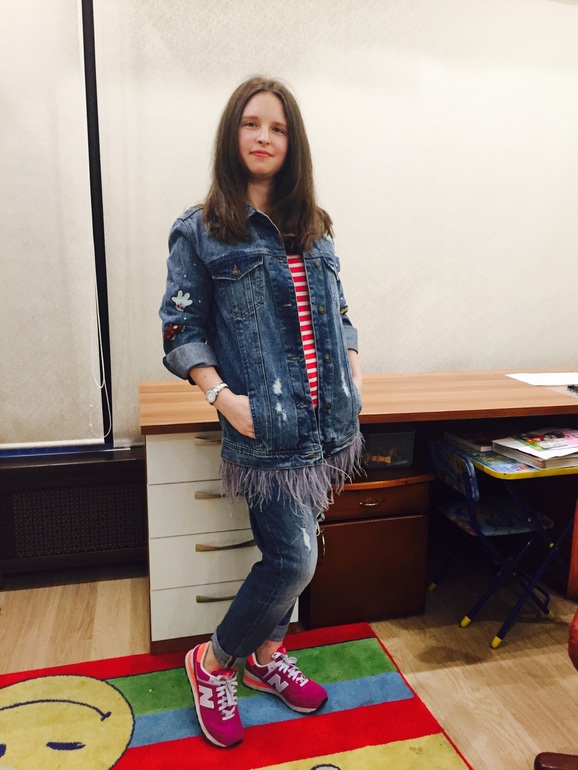 Первый образ - у меня дочка в школу, в10 класс, примерно так ходит))) А джинсы чьи?