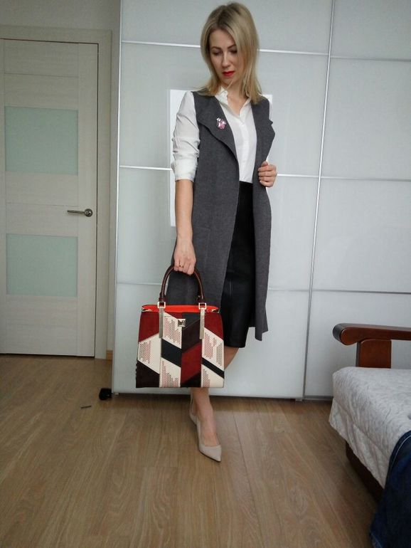 Деловой образ с ярким, но сдержанным геометричным пятном! Очень нравится!!!