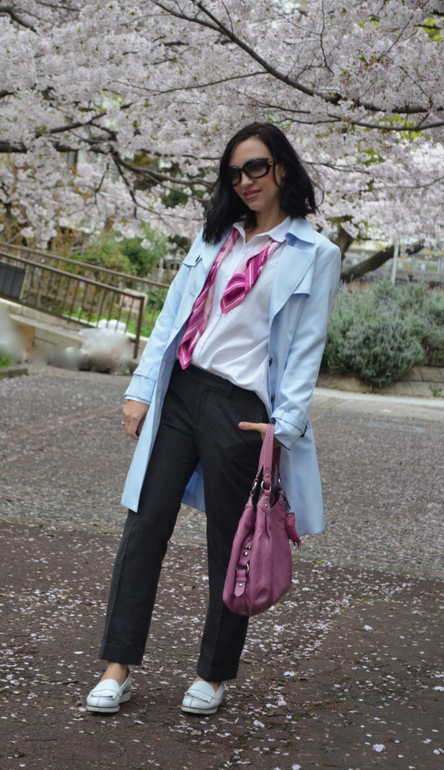 Привет, Лена! Очень нежно получилось, брючки серые? Мне плохо видно. Лен, а до этого начала учебного года, вы не учились что ли, отдыхали? Сколько у вас длились каникулы? Цветущая сакура прекрасна!!!