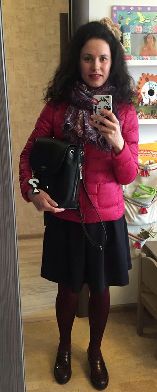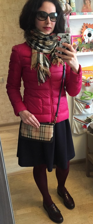 как вам?) на счет бордовых колготок сомневаюсь.. юбка темно-синяя, может лучше тонкие черные?)