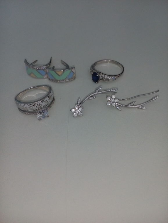 Я ношу радированое- оно не темнеет и белое золото нравится,но дорого. В серебре много красивых изделий. Вот мои- одни белое,остальное серебро