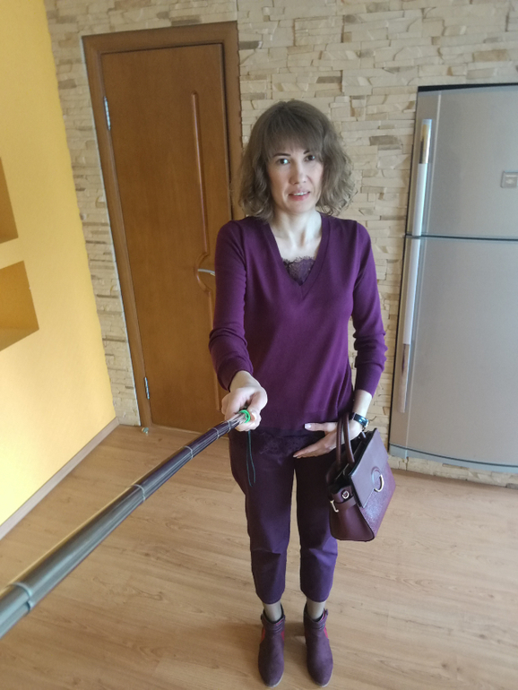 Вы мне всегда нравитесь, так преобразились со временем, но на сегодняшнем фото меньшего всего, извините. Челка - категорически нет! Брюки как сидят тоже не понравилось, длина какая-то странная, и не коротенькие. как сейчас носят, а как подстрелы смотрятся, а может просто к ботинкам не подходят. Вот цвет , да, красивый. Похудели, да, но поэтому поводу ничего не скажу, т.к. сама не толстая и когда еще худею, вокруг ахают, что сдует, а мне так комфортно.