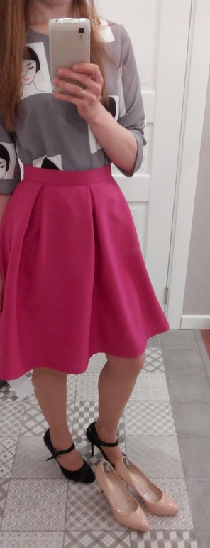 А вот юбка малиновая с серым верхом мне кажется не сочетается :((
