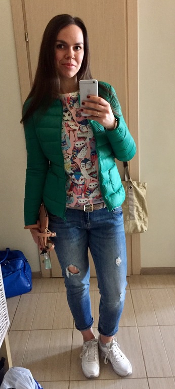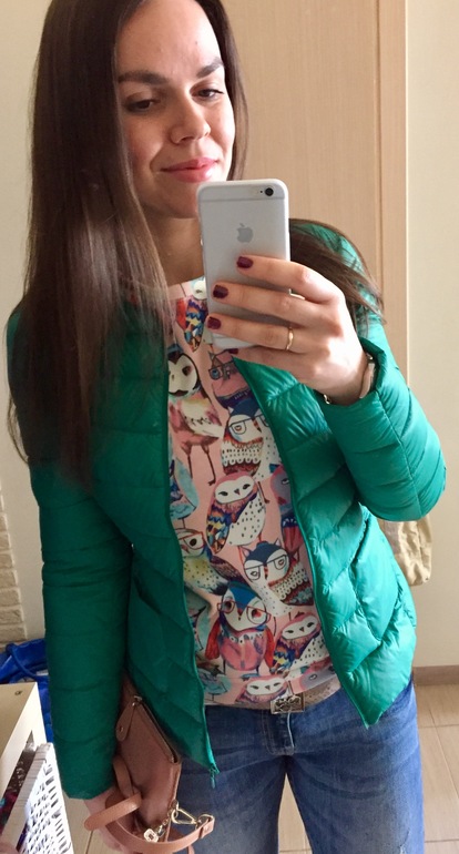 Совы клевые...искала их в прошлом году, но нет.( и зеленый к лицу мммм, сумка нра...обувь не нравится, но я это по-моему писала и это конечно я по себе сужу...ибо кроссовки для меня это спортзал.