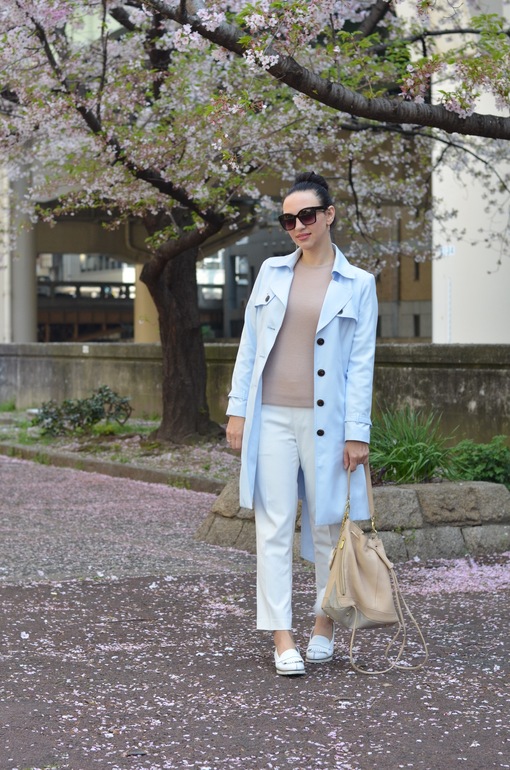 Надеюсь, это будет последний образ с теплой одеждой в этом году. Сакура уже отцвела, солнышко радует. Я уже готова примерять юбочки....