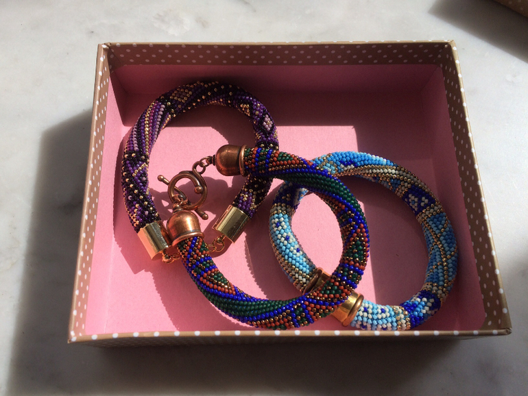 Это бисер, мне очень нравится, я фанат. Ношу активно первые два, остальные - по настроению, последнее время, редко.