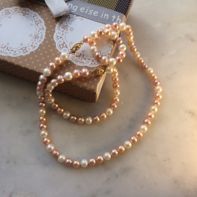 И жемчуг. Не знаю, носят ли его сейчас... Это Акоя ААА, с золотым замочком, почти люкс))
