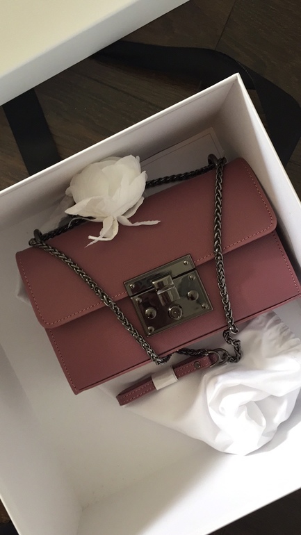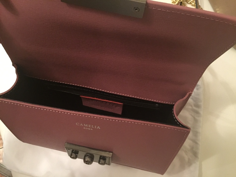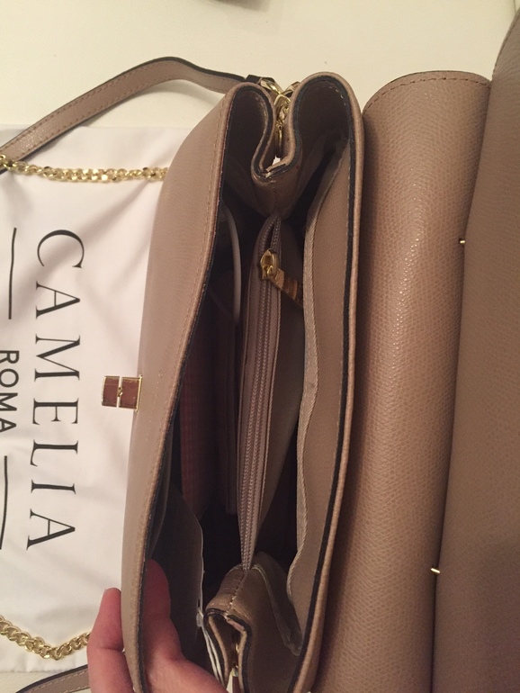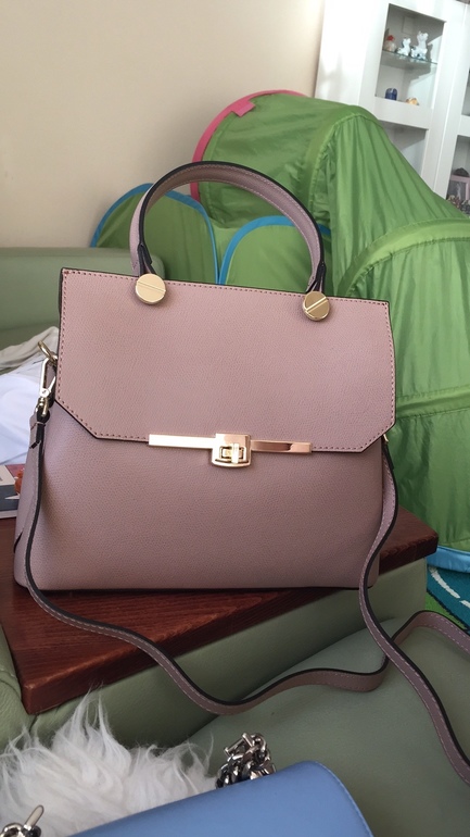 Первая розовая кросбоди, но можно носить на плече, стоила 90 евро, натуральная кожа. Пахнет каким-то клеем) и защелка если она не набита очень плохо прижимается. Это единственные минусы, в остальном я прям влюблена в нее! Фурнитура крепкая, увесистая, строчки ровные, внутри одно отделение и одно на молнии.