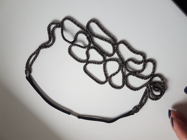 Спасибо ) да я его перевешу либо в ухо, либо на волосы. Нашла на волосы штучку. Еще думаю шарфик синий с геометрич принтом приделать куда нибудь