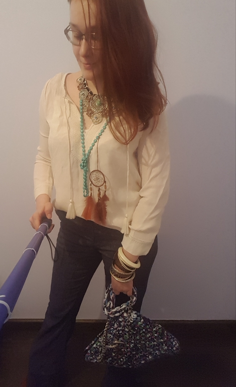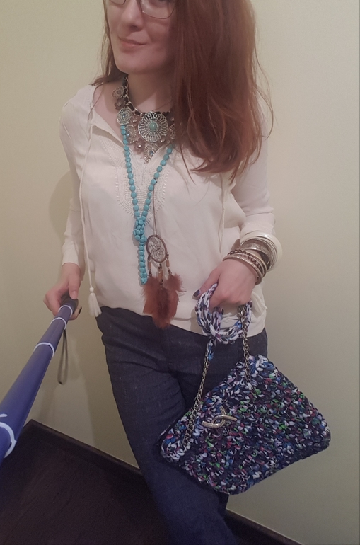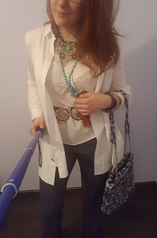 Хорошо получилось! Блузка классная, люблю такие. Только бусы из бирюзы лучше не завязывать, это как-то элегантно смотрится, пусть лучше так болтаются))