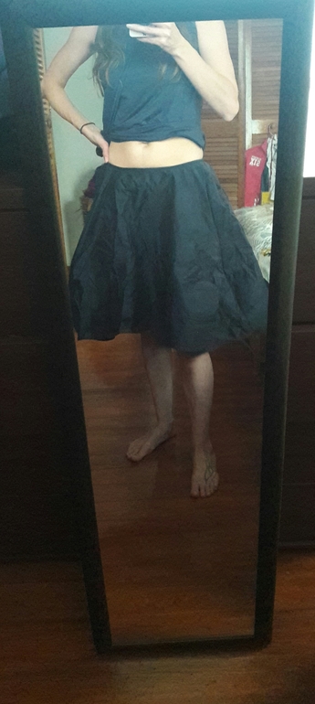 ПосоветуйтеЕсть вот такая юбочка. Купила я ее очень давно, но почти не одевала. Ткань очень классная (сорри за мятость). Темно синяя. НО как-то фасон мне не очень этот. Кажется, что визуально укорачивает ноги. Может перешить ее? Или обыграть как-нибудь? Нужны идеи :)