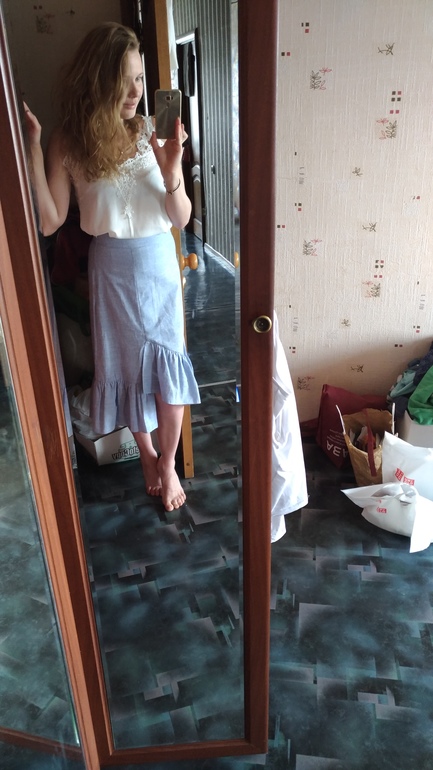 Либо вариант для упертых - носить все что купила с максимальной уверенностью - не " идет ли мне эта юбка?" и глазки кота из Шрека , а - " я искала голубую джинсу миди, не знаю, что за хрень на нее налепили, но мне удобно))"