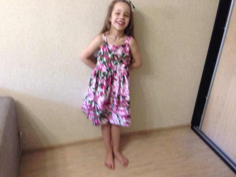 Хлопок , но нам оказался большой, буду перезаказывать, а так очень красивый и легкий на жаркое лето самое оно.размер 140. у дочки рост 130