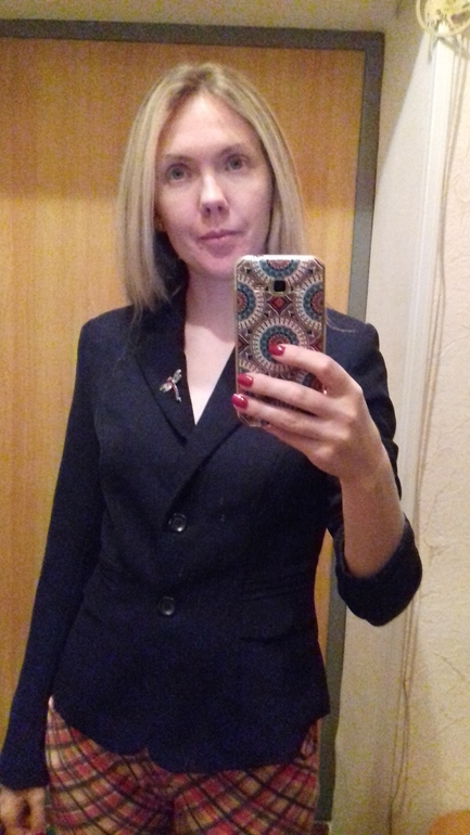 Пиджак отличный. Но вам черный у лица не очень, если нет яркого макияжа. Очень яркая красная помада и черные стрелки украсят пиджак.