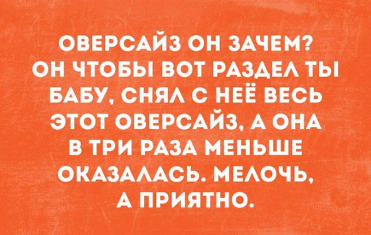 Оверсайз изначально планировался для худеньких и тоненьких, на них он хорошо и смотрится. А вот всё что больше 44ого, уже оверсайз не рекомендуется