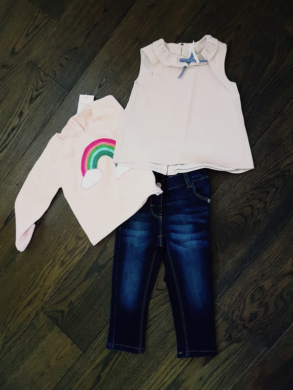 Ну я вот платьев так много первый раз набрала 🙈и то потому что лето и потому что свинюшки же ) ходить начинаем, поэтому на раз надеть и в стирку обычно. Джинсы вчера уже одевали, стрейчик, мягкие очень. Слипы не любим, неудобные они нам, и боди до полугода носили. В основном легинсов и футболочки/блузочки