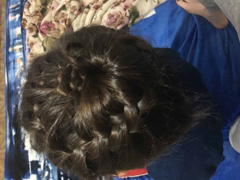 Мне тоже косичка вокруг бублика очень понравилась, есть в закладках этот пост. У нас другая проблема: волос слишком много, длинные и пушистые. С моими криворуками это большая проблема.