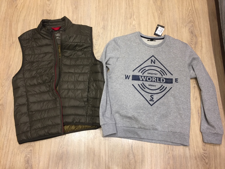 мужу купила толстовку и жилет. 420руб и 1050 руб соответсвенно.