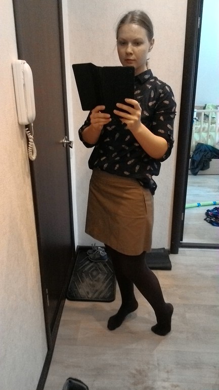 3. Еще юбку нашла. Колготки менее блестящие чем на фото. Нормально?и какую обувь сюда?