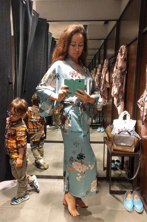 А мне нравится как на вас сидит : в японском стиле, на голове соорудить прическу аля гейша, на ноги "мюли" ныне трендовые в цвет рисунка на костюме легкий летний светлый рюкзачок,зонтик .....когда на вас выглянула и представила весь образ в в стиле и не знала что вы проживаете именно там. вам очень хорошо в отличии "заровской модели-вешалки"