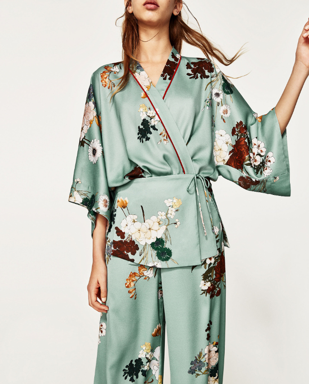 кимоно- это последний писк моды сейчас!!! сочетай с разными предметами гардероба- джинсы, рваные или классика, однотонные брюки, юбки конечно же... брюки от костюма тоже можно комбинировать, наверное с чем то однотонным.. я бы вместе их не стала носить в общем 😉